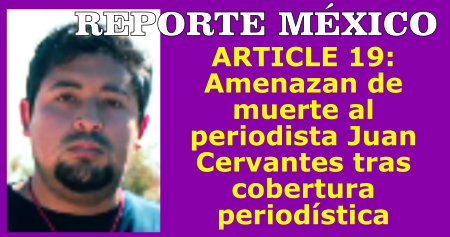 ARTICLE 19: Amenazan de muerte al periodista Juan Cervantes tras cobertura periodística